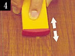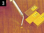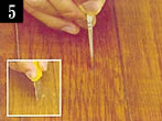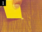 周囲の色に近い色のハードワックスを選び、電気ゴテで溶かし傷の周辺よりより多少盛り上がる程度に充填します。